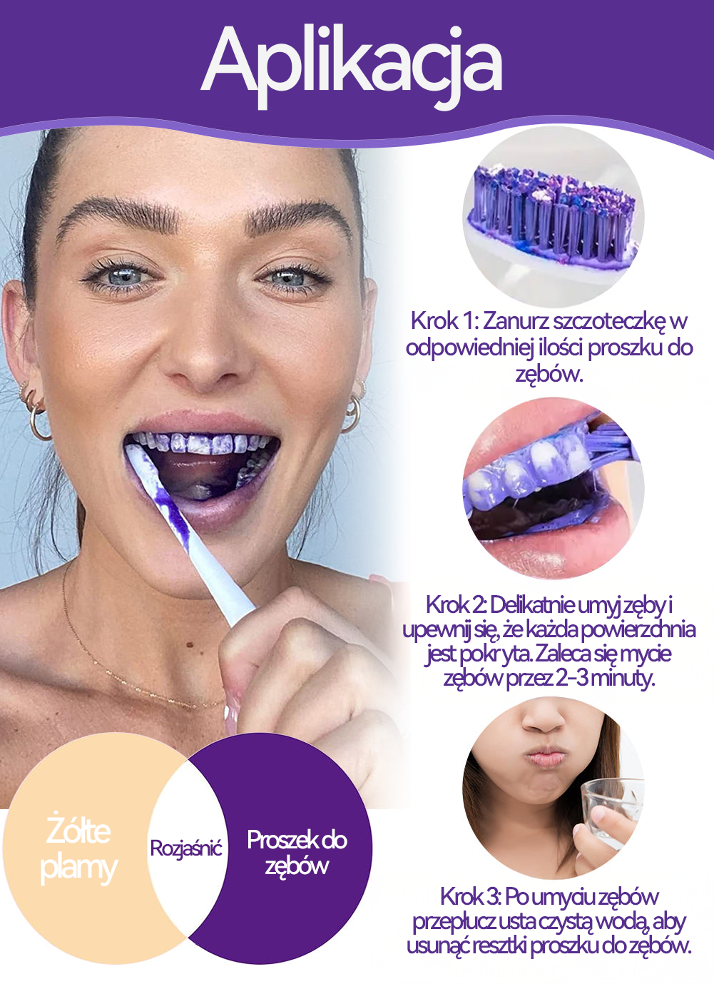 „Przez lata byłam niepewna z powodu przebarwionych zębów, głównie z powodu kawy, czerwonego wina i palenia. Próbowałam wszystkiego, od pasków wybielających po drogie zabiegi, ale żaden z nich nie spełnił moich oczekiwań. Po zaledwie tygodniu stosowania tego proszku do zębów zaczęłam dostrzegać wyraźną różnicę. Moje zęby wyglądają dużo bielsze, a ja czuję się pewniejsza siebie, gdy się uśmiecham. To ulga znaleźć produkt, który jest skuteczny i nie powoduje nadwrażliwości.” — Maria Nowak